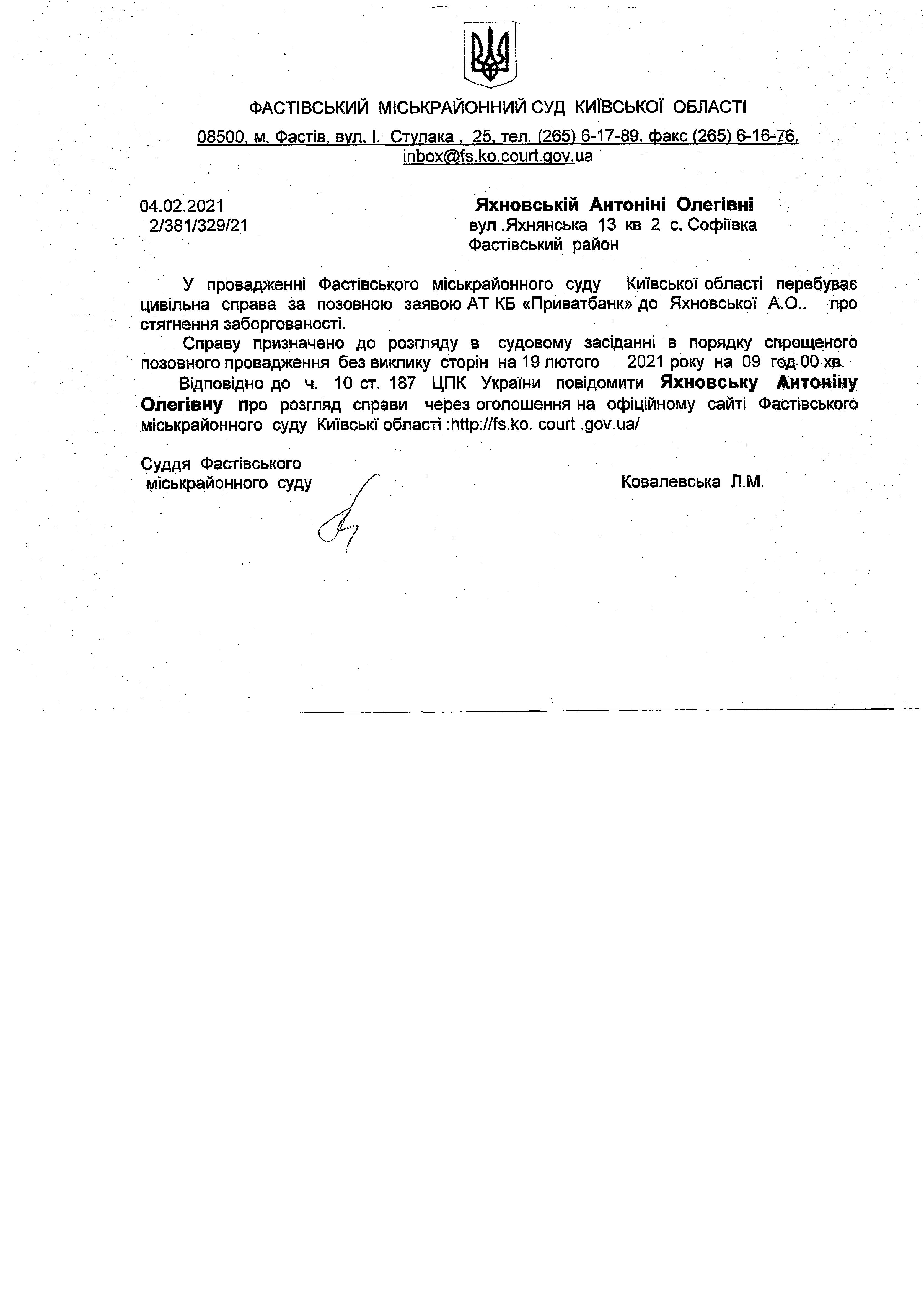 Яхновській Антонімі Олегівні
