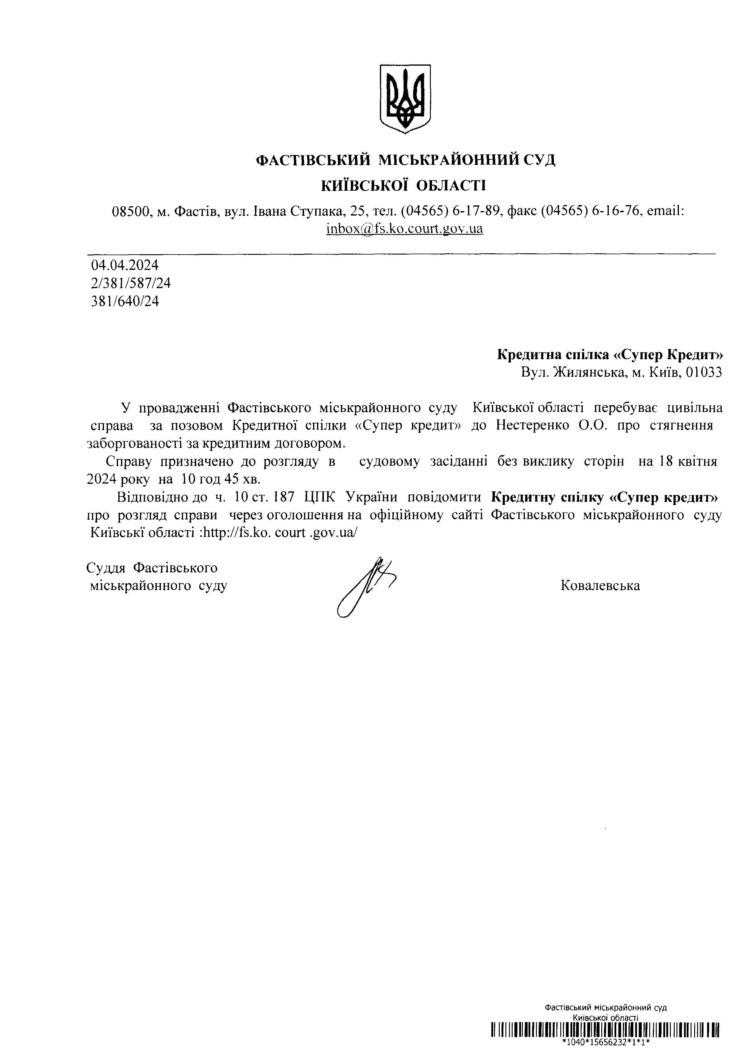Кредитна спілка «Супер Кредит» Вул. Жилянська, м. Київ, 01033