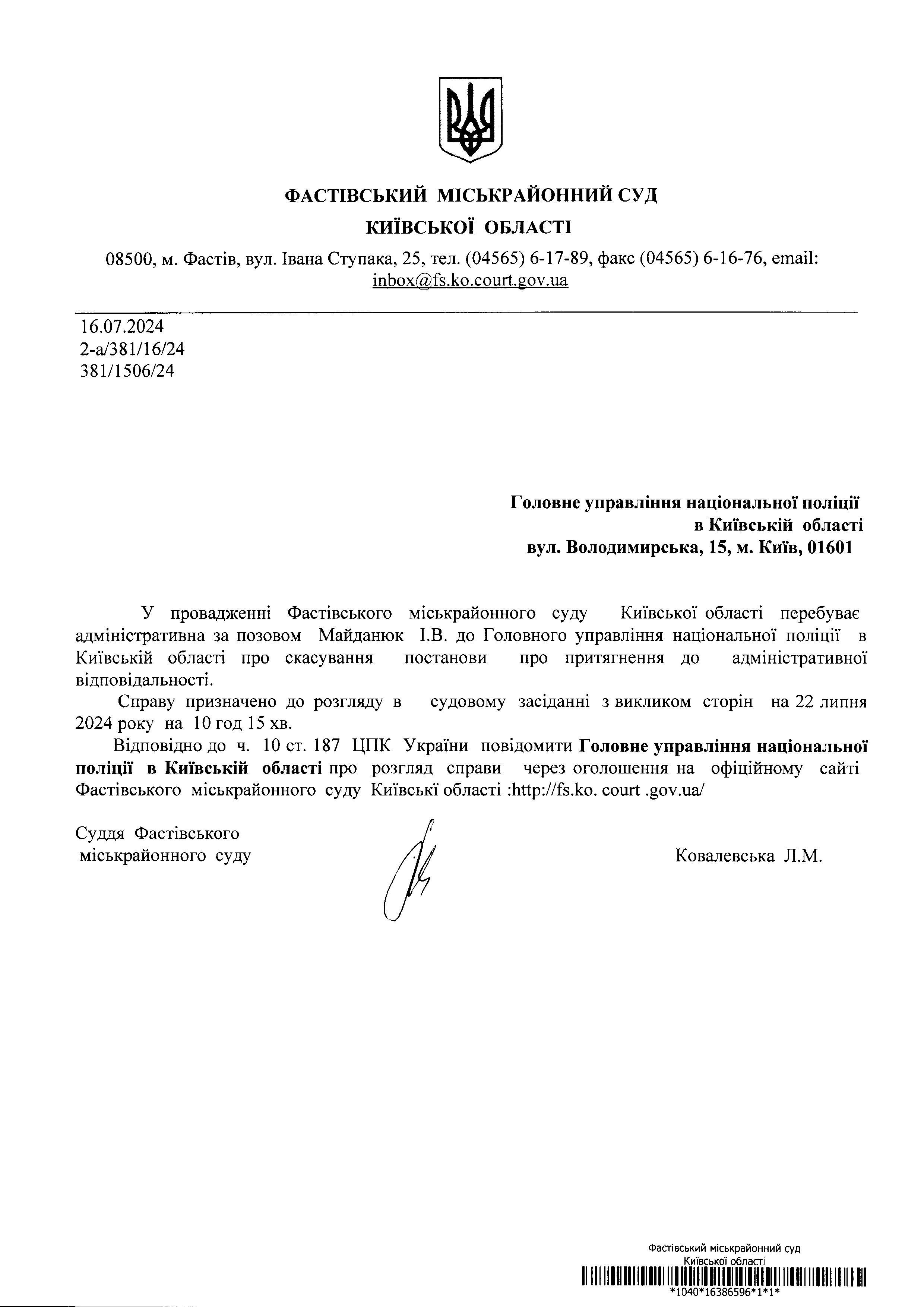 Головне управління національної поліції в Київській області вул. Володимирська, 15, м. Київ, 01601