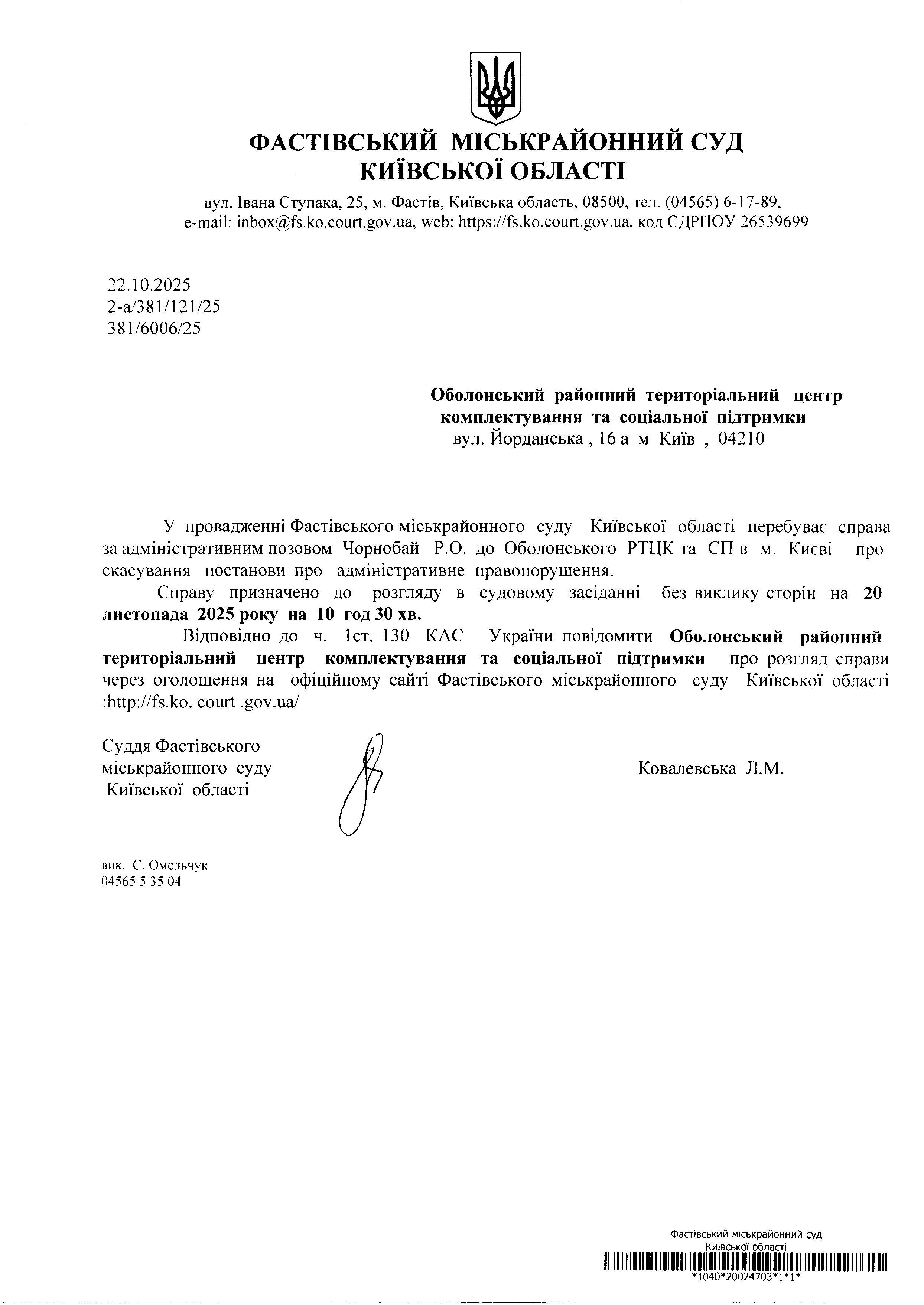 Оболонський районний територіальний центр комплектування та соціальної підтримки вул. Йорданська, 16 а м Київ , 04210