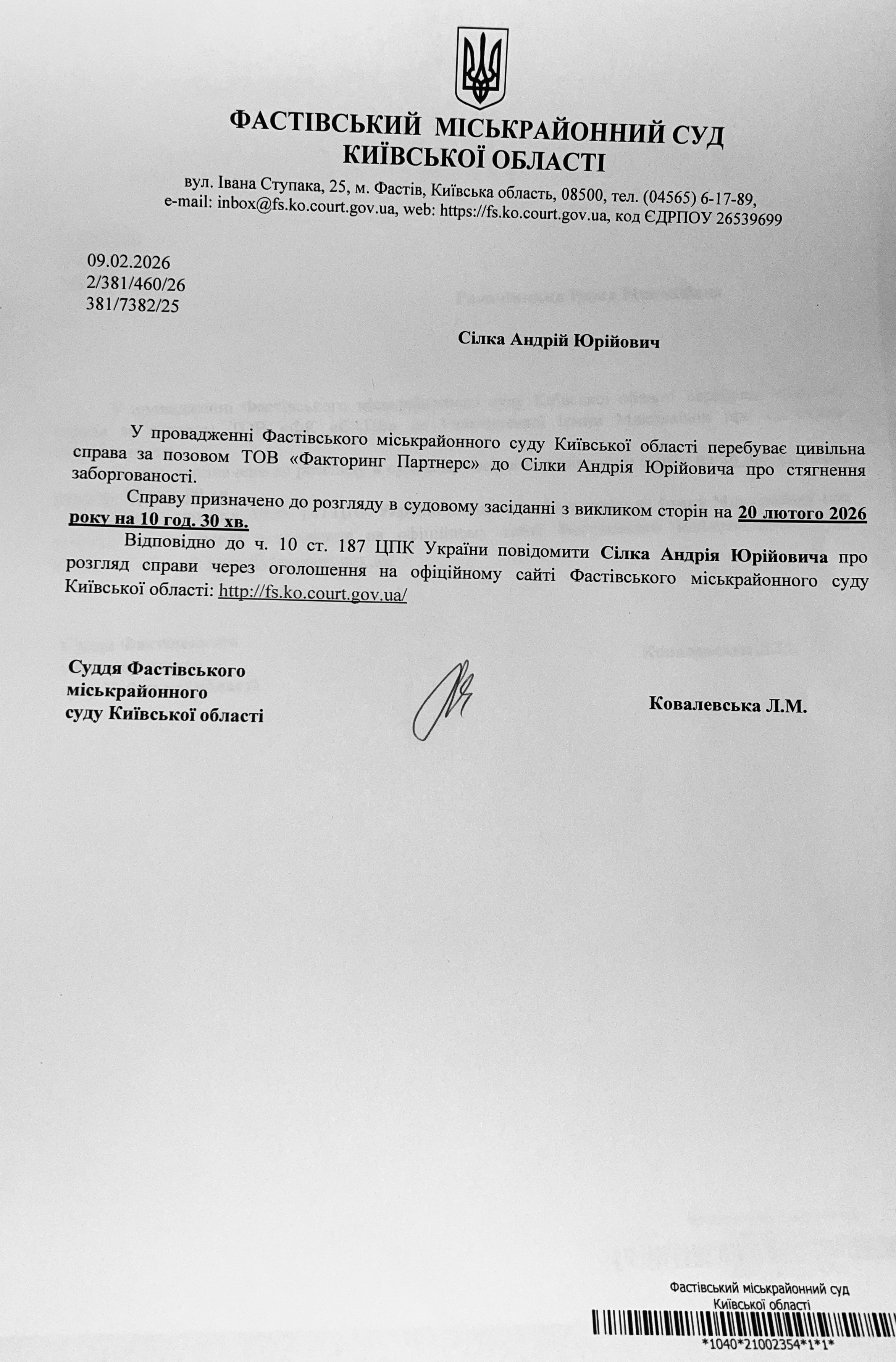 Фастівський міськрайонний суд Київської області викликає Сілку Андрія Юрійовича